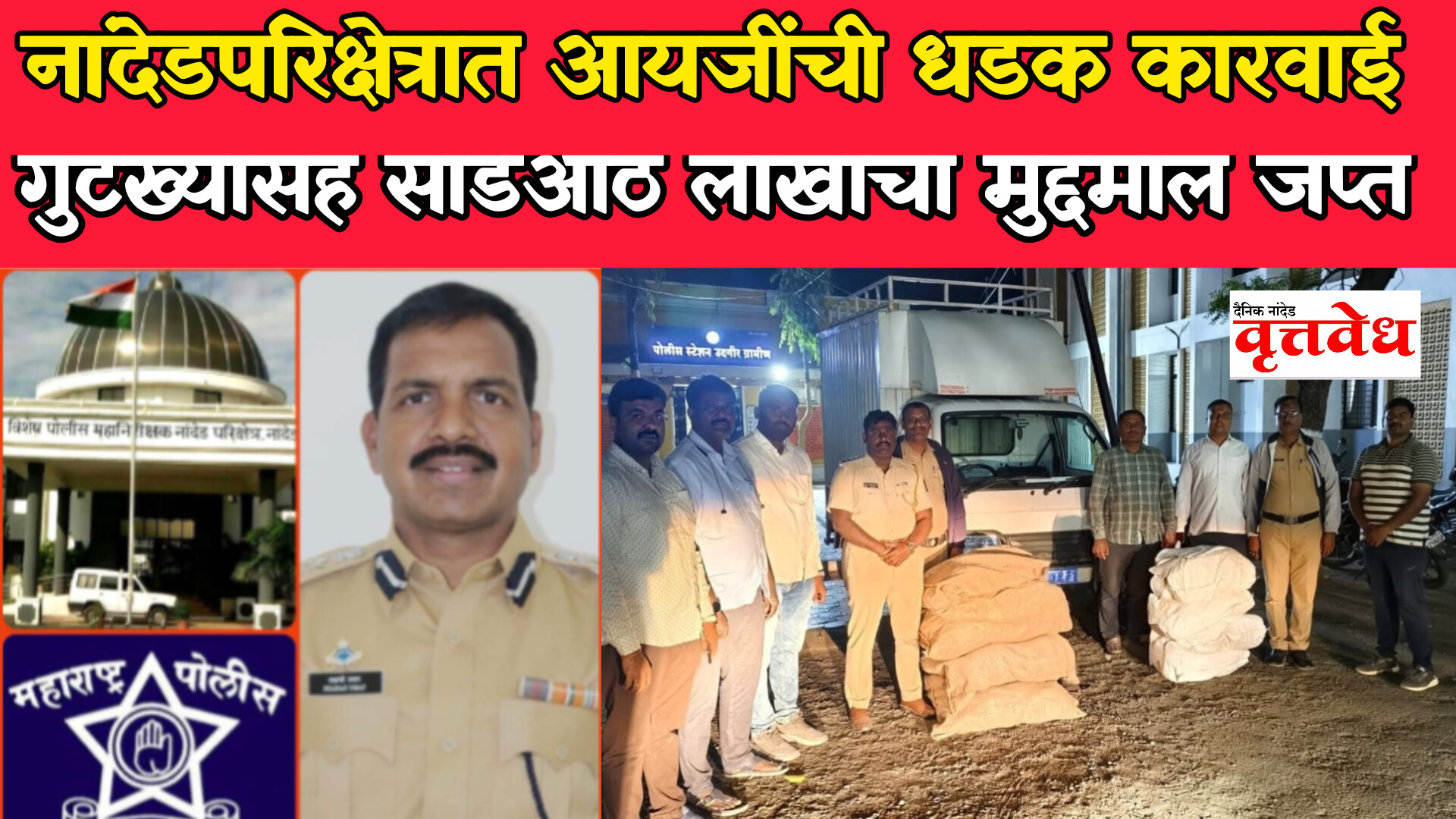 नांदेड परिक्षेत्रात गुटखा विरोधी मोहीम तीव्र; पाच कारवायांत नऊ जणांना अटक; साडेआठ लाख रुपयांचा मुद्देमाल जप्त